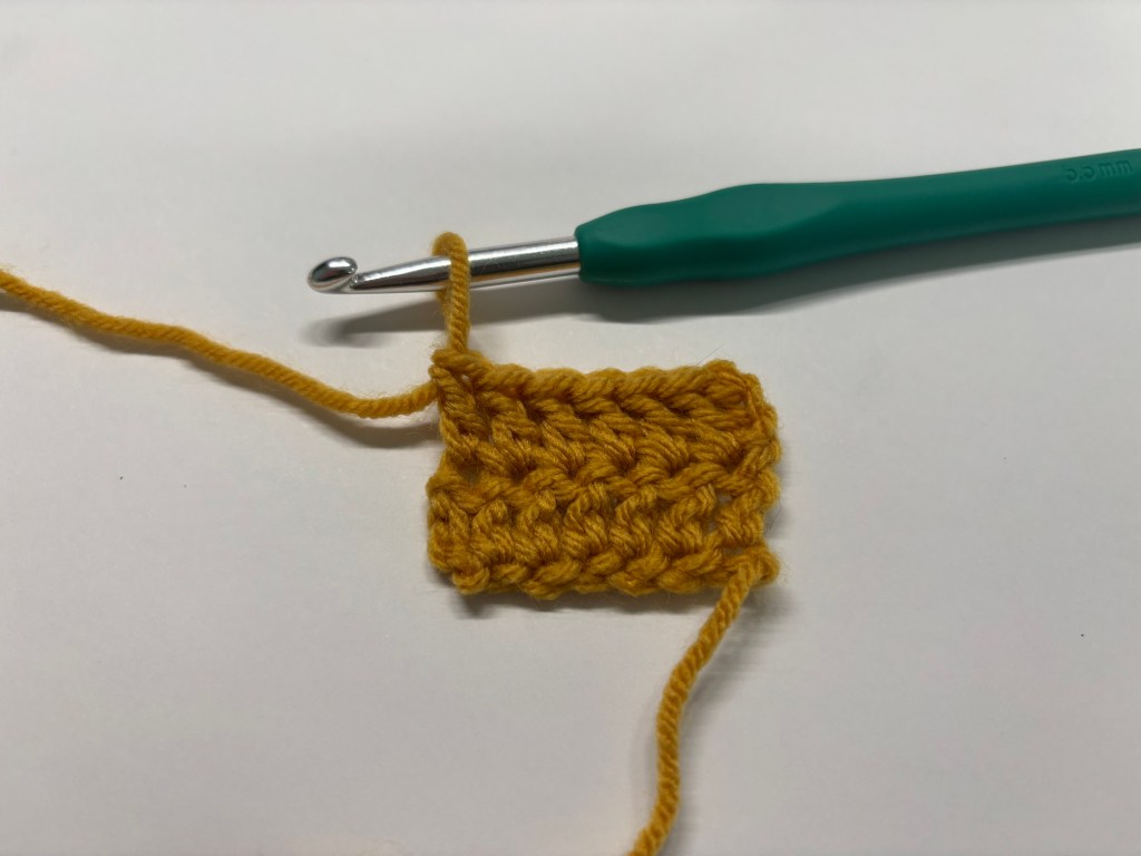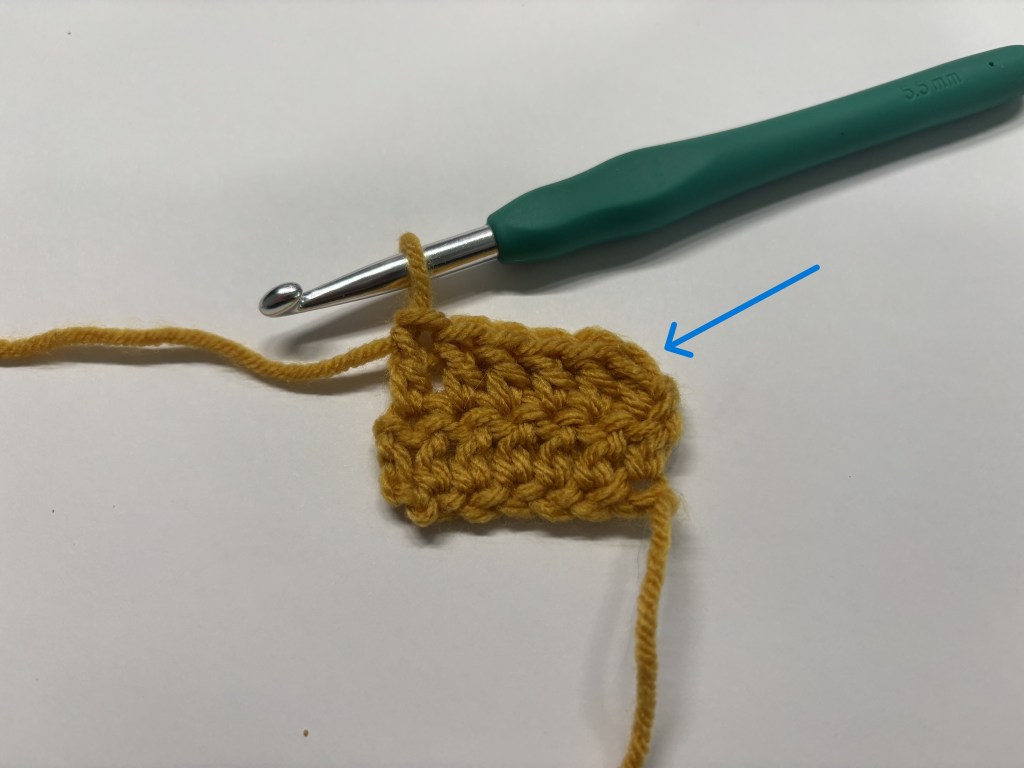 Since we are at the end of the row, this is where the pattern would say “ch 3 and turn” before starting the next row, aka the turning chain.